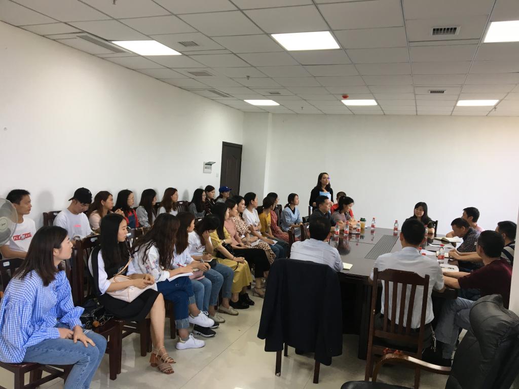 本次座谈会在刘院长的主持下,2017级毕业生轮流发言,为在座的各位领导、老师以及2018级的学弟学妹们分享她们找工作和实习的经历、经验。总结起来有以下几点:1、讲课的基本功要扎实;2、口语要好,发音标准,语句流畅;3、板书规范;4、心态要好,临危不乱;5、机智应对问题环节;6、要及时关注招聘信息。