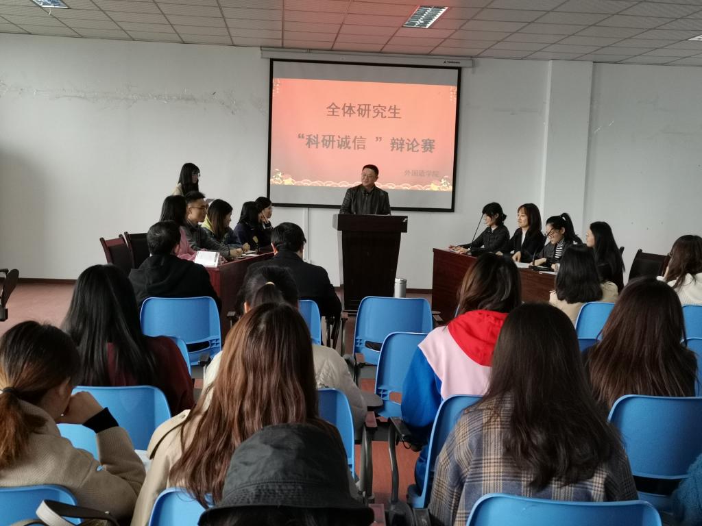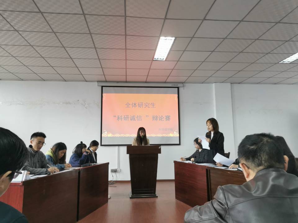 2020年11月5日,我院在明辨楼一教604举办了2019级和2020级全体研究生参加的“科研诚信”辩论赛。院长刘晓林、副院长唐淑华、党总支书记甘长银、副院长许楠和教务助理肖祎博士应邀担任评委。