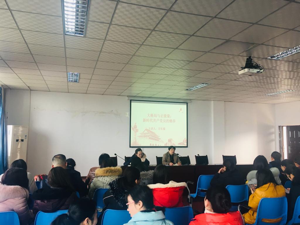 2019年2月24日下午14:30,OK138太阳集团党总支组织全院教师党员集体学习,党总支书记甘长银给全体党员上了一堂题为《大格局与正能量:新时代共产党员的修养》的党课。甘长银分别从共产党人需要大格局、社会需要正能量,以及如何提高个人格局、如何点燃并传递正能量等方面等方面阐述了在新时代如何加强共产党员的党性修养。