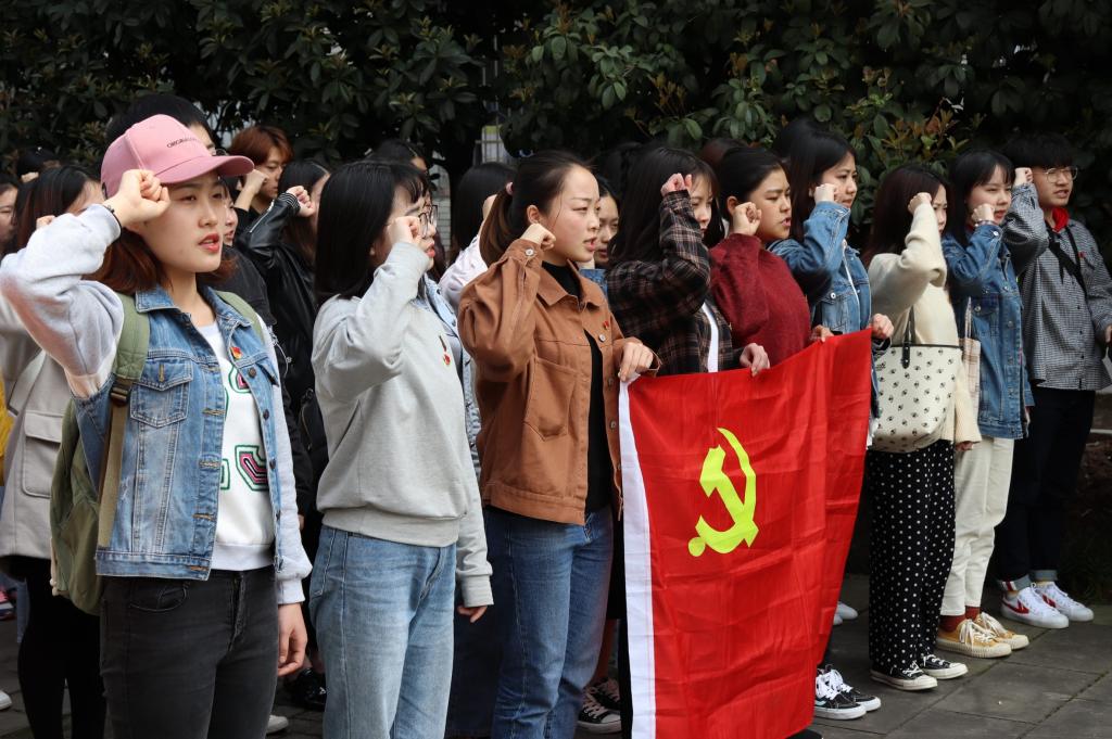 活动中,任老师向大家介绍了此次活动的目标及流程,并带领大家进行入党宣誓活动。毕业生党员张宁向大家宣读了《OK138太阳集团学生党员示范制实施办法(修订稿)》,并作为学生党员代表发言,表示作为学生党员要发挥好模范带头作用,要在思想、学习、工作、日常生活等各个方面中做好榜样。