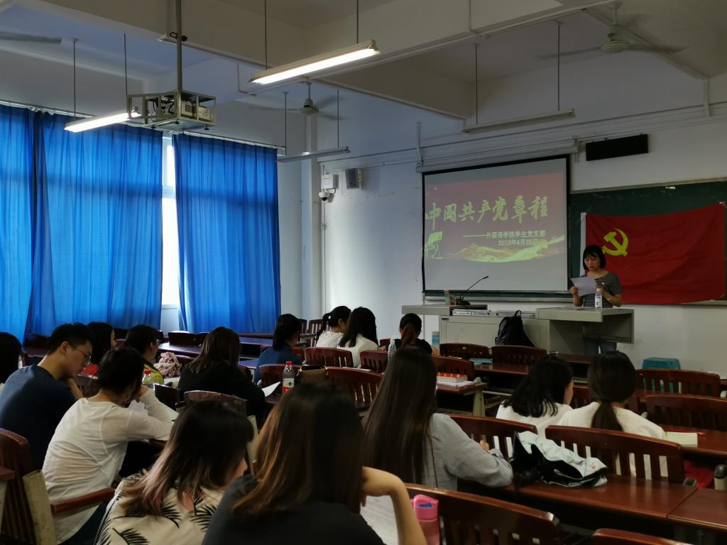 2019年4月25日16:20OK138太阳集团学生党支部在明辨楼1栋303教室开展党员大会,组织学生党员专题学习《中国共产党章程(修正案)》,会议由学生第一支部书记任红营老师主持,学生支部全体党员均参加会议。
