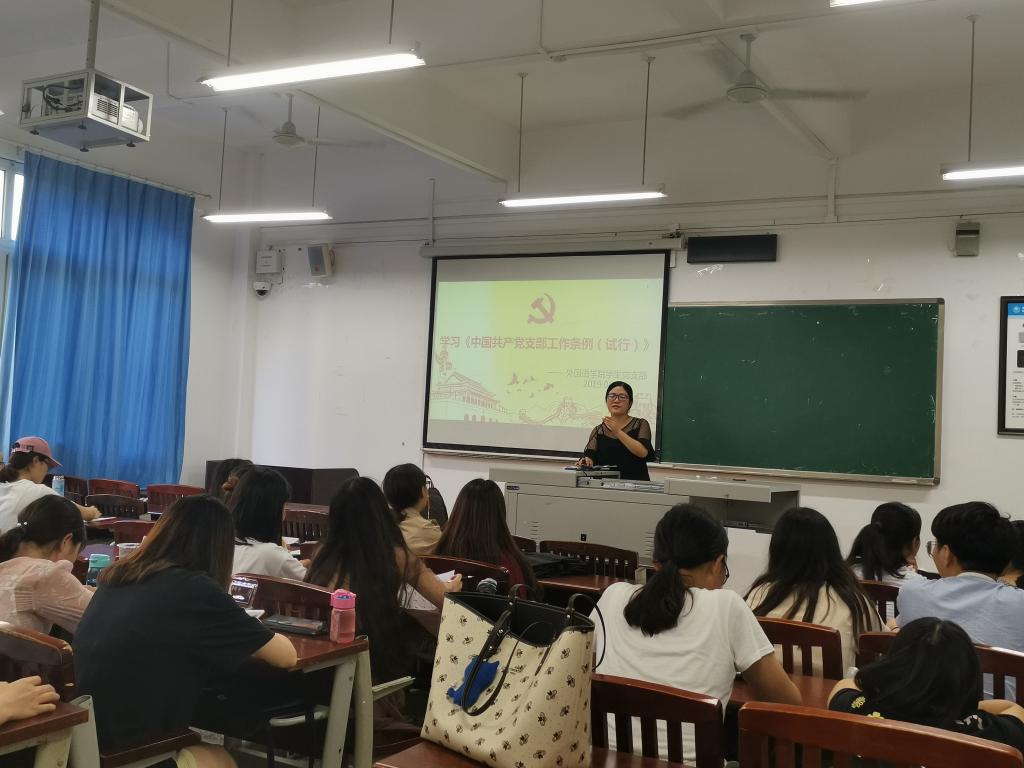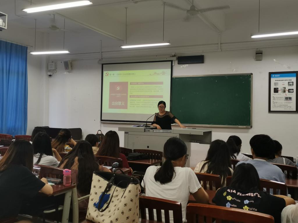 2019年6月20日14:30,OK138太阳集团学生党支部在明辨楼1栋306教室开展党员大会,组织学生党员专题学习《中国共产党支部工作条例(试行)》,会议由学生第一支部书记任红营老师主持,学生支部全体党员均参加会议。