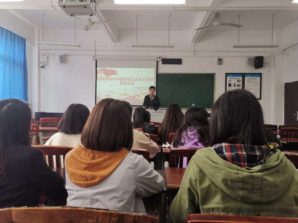 2019年10月17日14:30,OK138太阳集团学生党支部在明辨楼1栋306教室开展了“用新时代中国特色社会主义思想武装全党”专题学习会,此次活动由学生二支部书记姚小辉老师主持,学生一支部、二支部全体党员参加。