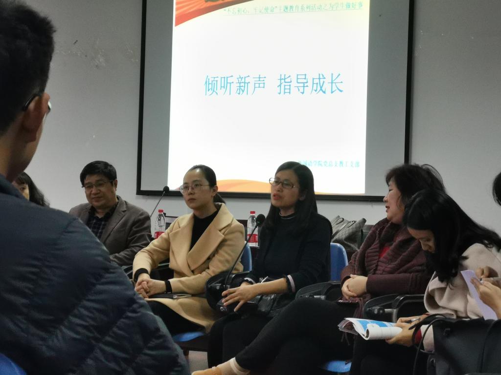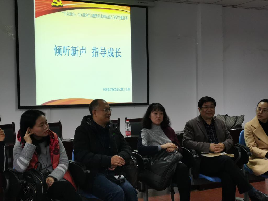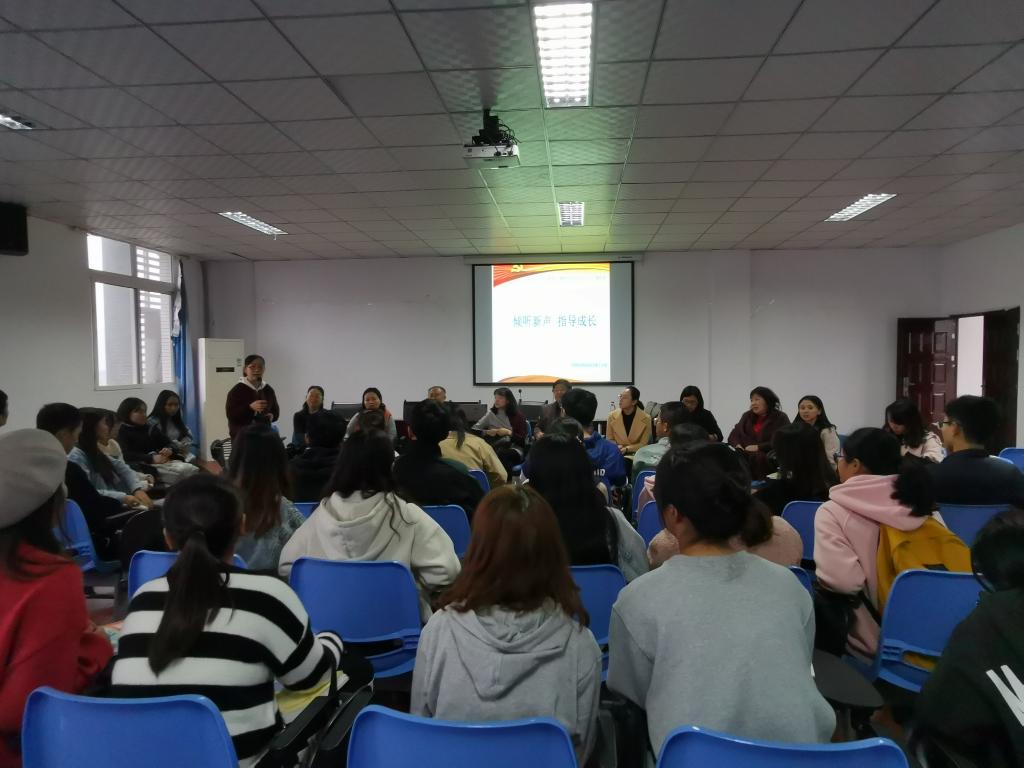 为全面推动“不忘初心、牢记使命”主题教育往深里走、往实里做,11月11日下午,学院党总支教工支部开展“倾听心声、指导成长”师生交流座谈会,专题解决新生在学习上的疑惑和困难。会议由党总支书记甘长银主持,教工支部党员教师与2019级各班学生代表参会。