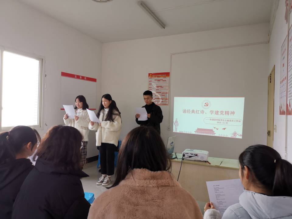 2019年12月5日下午,我院学生公寓党员工作站在榕叶苑7舍401开展“颂经典红诗、学建党精神”朗诵活动。此次活动由学生公寓党员工作站分站长汪俊男、雷瑶主持。