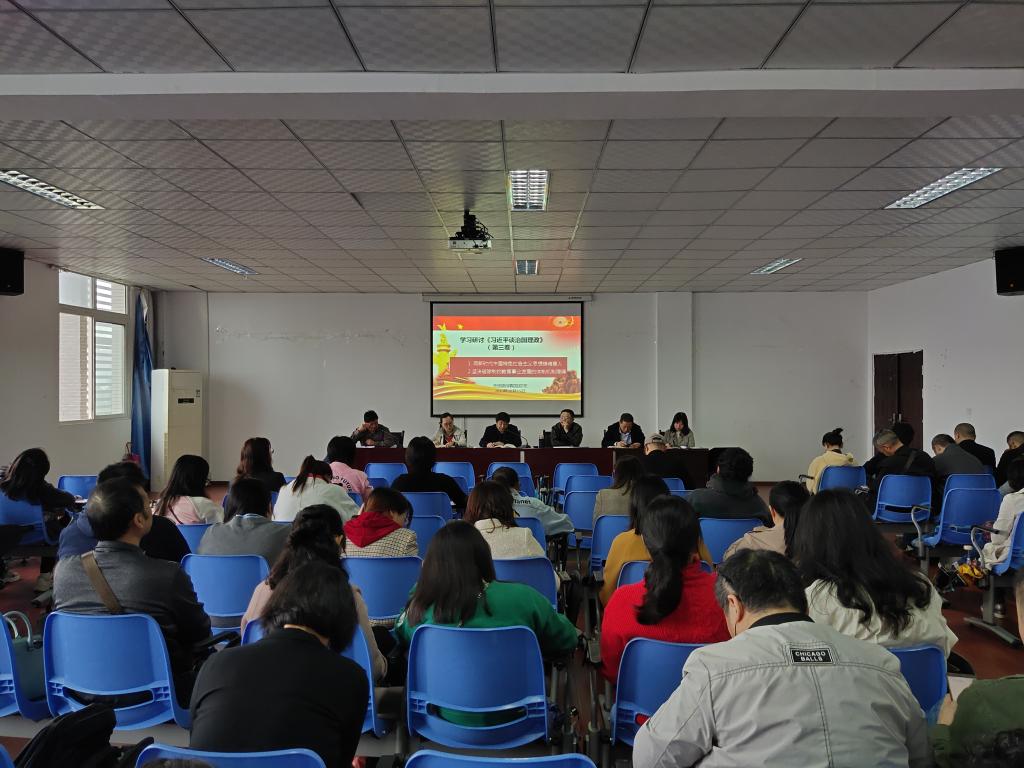 10月15日下午,我院党总支组织全体教师学习《习近平谈治国理政》(第三卷),党总支书记甘长银领学了习近平在学校思想政治理论课教师座谈会上的讲话要点和习近平在全国教育大会上讲话的部分内容。
