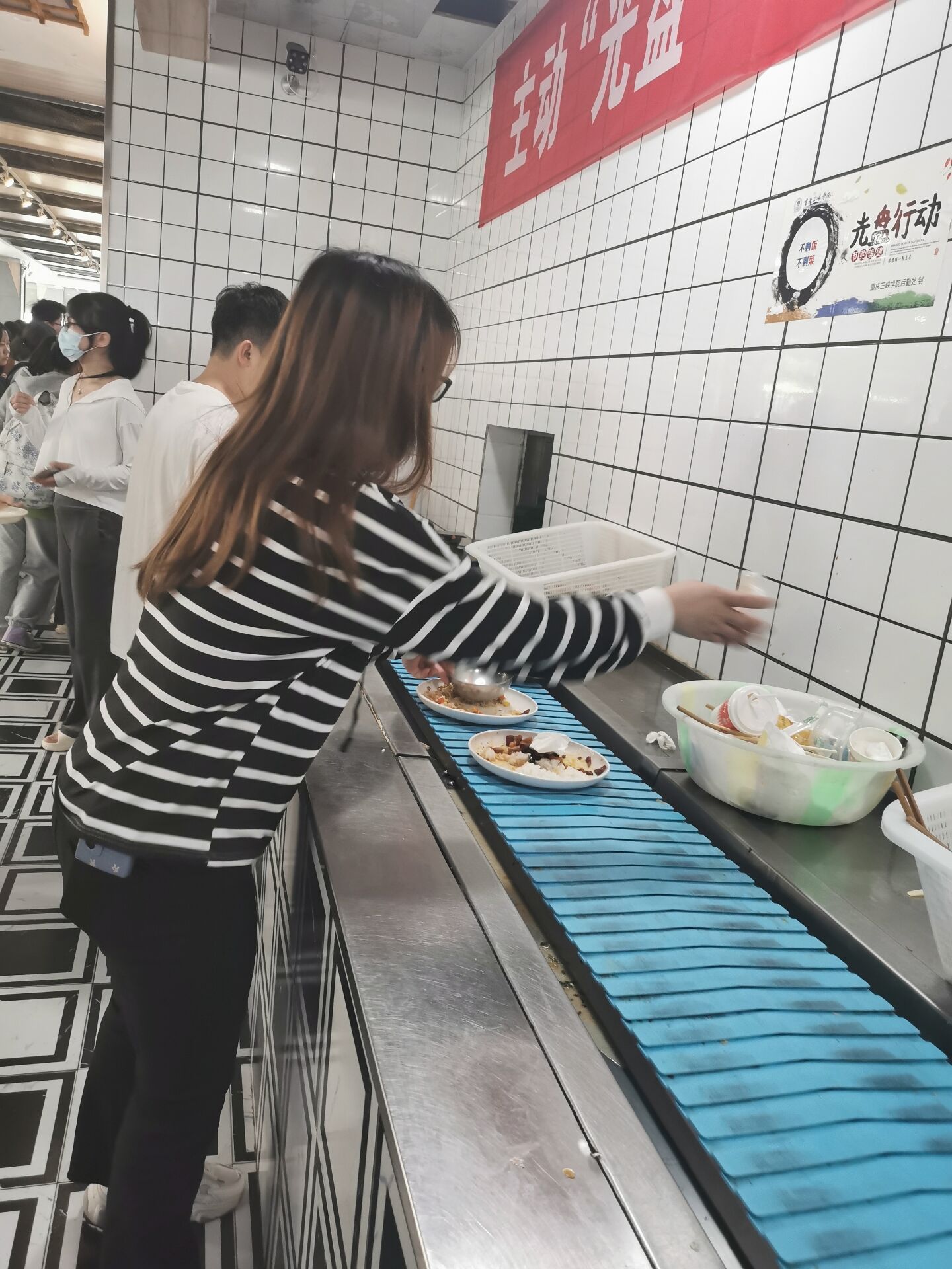 活动期间,学生党员带头响应学校全面营造“厉行节约、反对浪费”的号召,积极参加 “光盘打卡”活动,并带领身边人一起加入光盘行动,弘扬中华民族勤俭节约的传统美德,营造浓厚的“厉行节俭、反对浪费”的氛围。同时,部分学生党员争做志愿者,在学校食堂开展“民以食为天,粮以俭为先”的主题宣传,劝阻和制止餐饮浪费,帮助同学们树立节约光荣、浪费可耻意识。