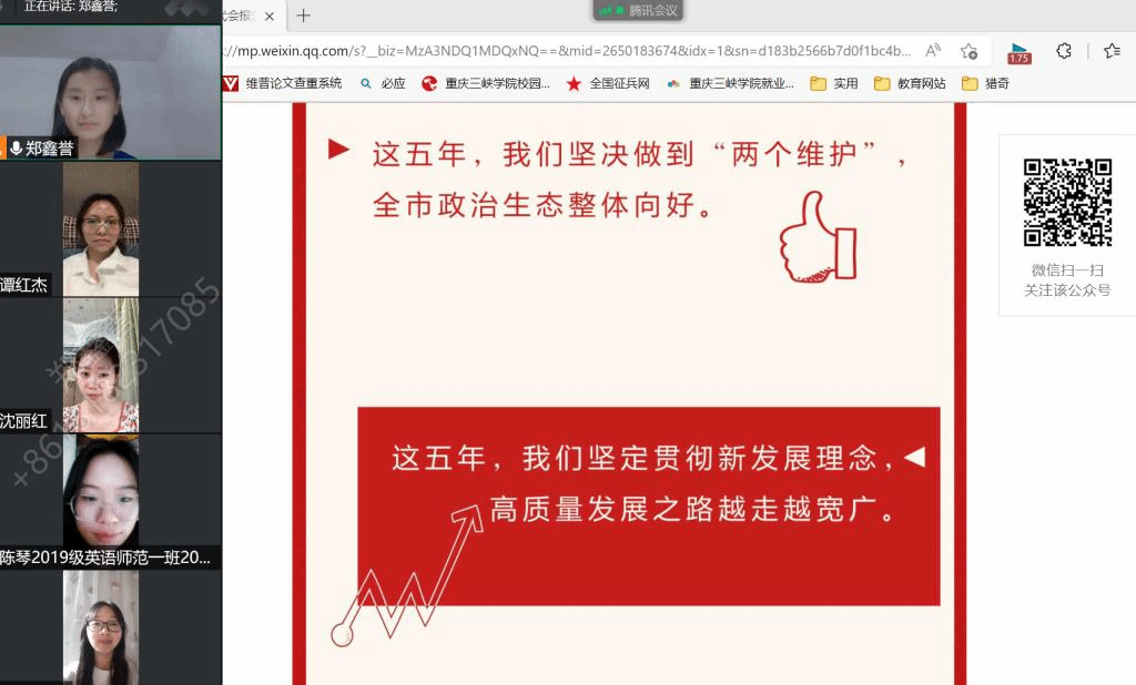 党员工作站站长黄玉表示,重庆市第六次代表大会回顾总结了重庆市过去五年取得的非凡成就,也为未来发展指明了道路和方向,展现了重庆全面建设社会主义现代化新篇章的信心,今后自己将在重庆这块山清水秀之地贡献自己的力量,在奋力书写成渝地区双城经济圈新篇章的进程中彰显三峡学子的使命担当。