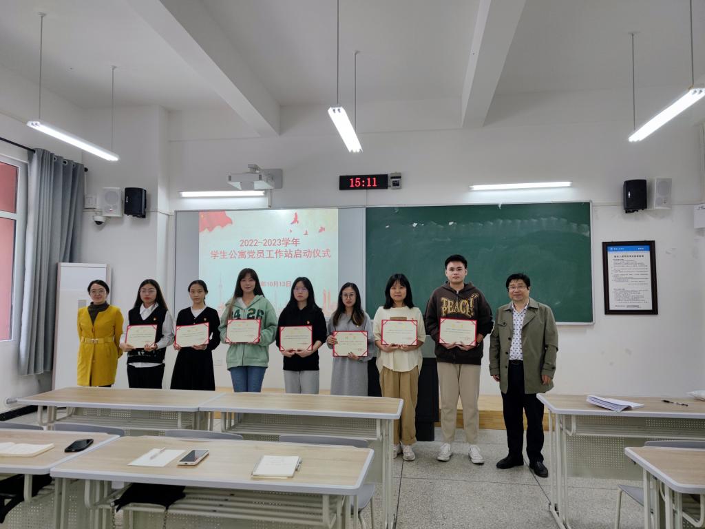 接着,向明霞书记宣布新一届学生公寓党员工作站站长、分站长名单,并和李健书记一起为他们颁发聘书。