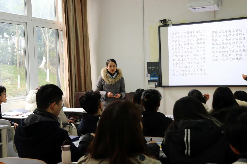 我们跟老师首先以如何建立学生的语言自信为话题展开访谈。陶老师表示,要先从思想上下手,让学生们充分了解日语和汉语两种语言的本身差异,确立语言的学习目标,然后使用学生感兴趣的方法将他们引上正轨。比如,陶老师说,她会在每周举行一个“表达”活动,让学生将日漫日剧里的对话情景搬上讲台,最大限度给学生提供“说话”的机会,让学生在多次练习后自主发现自己的进步,从而提升语言自信。当然,陶老师补充道,老师的鼓励也是推动学生前进的助跑器。她认为,老师应该理解学生在面对外语的畏惧心理,对于学生的每次进步给出肯定和鼓励,这对于增强学生的语言学习信心有一定的帮助。