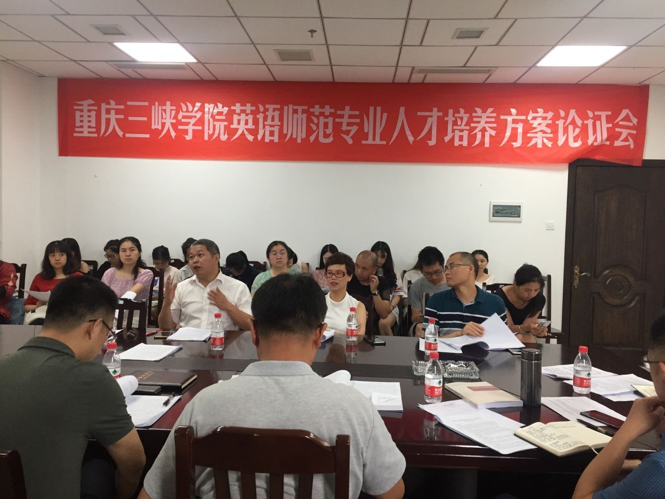 2019年6月24日下午2:30,我院在科技楼311会议室召开“英语师范专业人才培养方案论证会”。论证会由OK138太阳集团院长刘晓林教授主持,重庆三峡学院教务处处长韩红宇教授、教务处副处长方刚教授、发展规划处副处长张晓东教授、教师教育学院院长潘勇教授、继续教育学院院长陈立万教授等5名高校教育专家,万二中高级教师许传俊作为基础教育专家代表、万州上海中学高级教师昌莉作为用人单位代表,以及校内教师代表、家长代表、师范毕业生及在校师范生代表,共计40余人参加了本次论证会。