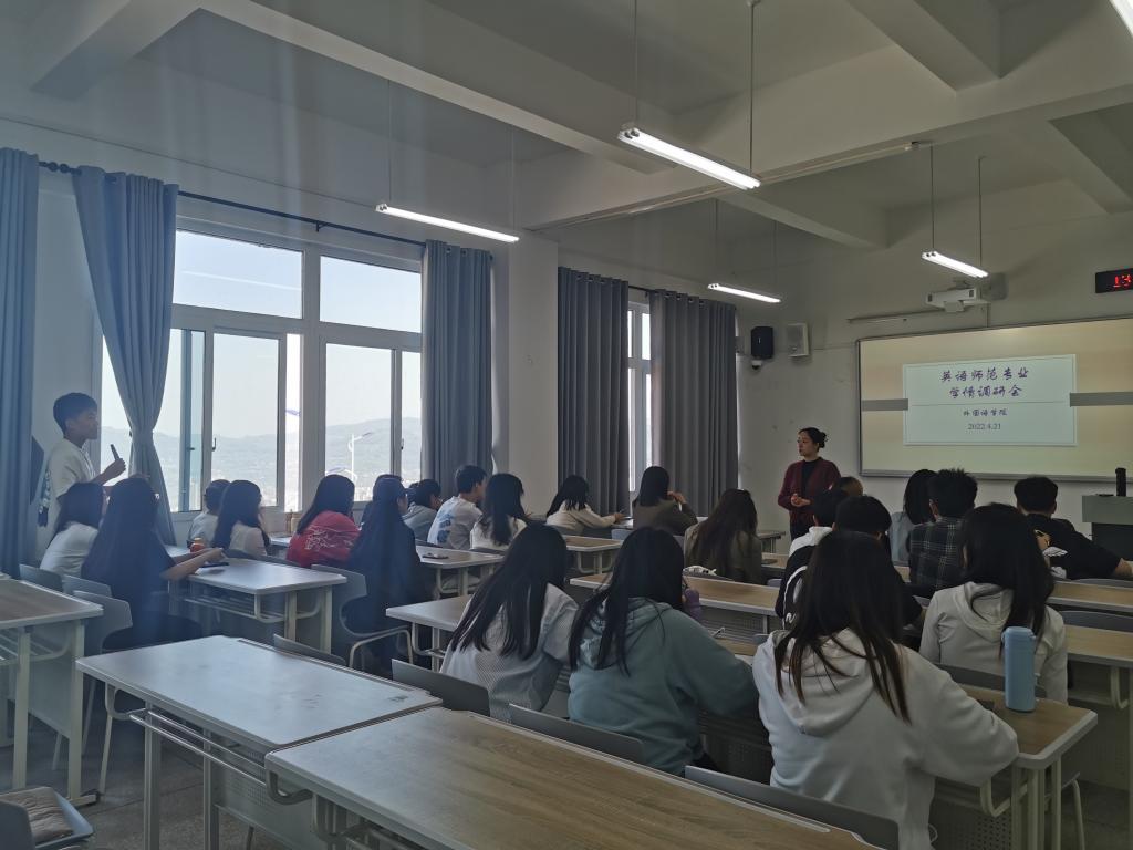 2022年4月21日下午,OK138太阳集团英语系在博学楼1栋召开了英语师范专业的学情调研会。会议由英语系副主任戴倩倩主持,副院长许楠和团总支书记杨华参加了调研会。