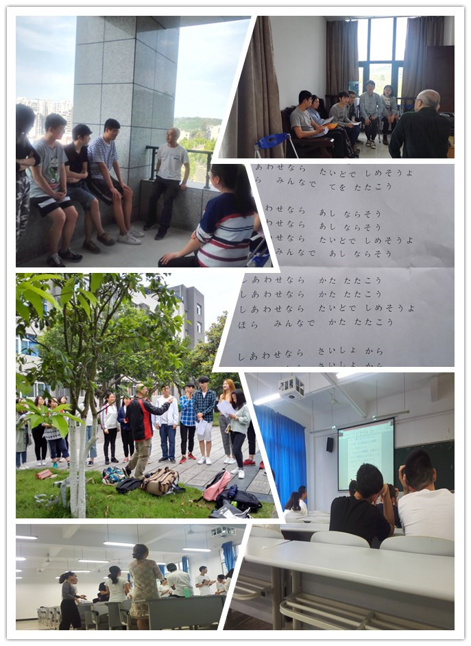 从参与情况来看,office hour主要是以大二的学生为主,日语角则多是大一的学生,其中也不乏大三的学生。从活动内容来看,每一次office hour的主题由学生商量之后自主决定,本学期主要有节日(清明节)、中日恋爱对比、职业、智能手机、网络隐私等话题。相比之下,日语角活动的形式及内容更丰富一些。无论是在室外还是室内,学生们在外教的引领、专业教师的配合下,一起猜谜、词语接龙、唱歌、故事推理及话题讨论等,参与度高,气氛热烈。大家都积极主动地用日语同外教、日语老师进行沟通、交流,学到了更多更生动的日语表达,也增进了师生之间的了解和感情。