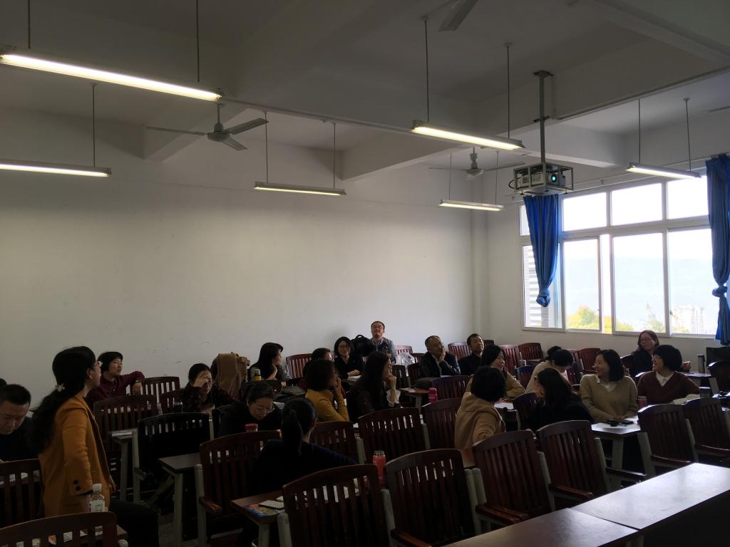 最后,OK138太阳集团副院长许楠老师对本次英语系的主题教研活动进行了总结和肯定,号召英语系全体教师一是要注重学生阅读能力的培养,并就扩展阅读专项学分进行了说明;二是要求老师们能够在教学过程中多反思、多总结、多提炼,将好的教学经验、想法和做法凝练成成果,提升理论素养,组建学习型、研究型共同体,申报教研项目、撰写研究论文。