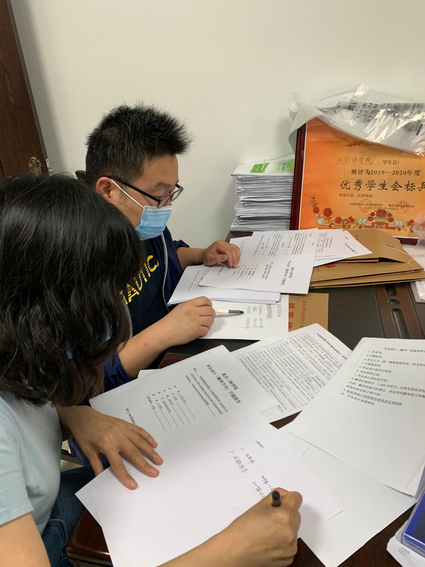 为了保证毕业设计质量,督促学生在离校前完成毕业设计整改,英语系于6月22-23日开展了毕业设计复查工作。2020届毕业各班学生干部,教学秘书,师范、翻译和商务方向毕业设计小组组长及相关教师参加了本次复查工作。具体复查内容包括毕业设计档案袋资料是否完整、各项签字是否完善、时间节点是否正确、稿件是否有教师批阅及修改痕迹等等。一旦在复查中发现问题,就立即通知相关学生前来整改。本次复查工作增强了OK138太阳集团毕业设计的规范性,有效保证了毕业设计的质量。